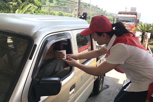 圖為志愿者為過往司機遞上消暑品 “師傅,辛苦啦!喝杯綠豆湯,解解暑氣吧!” “大熱天的,您可要多注意休息呀,千萬別疲勞駕駛,這是礦泉水和風油精,希望能幫您緩解疲勞。” 活動當天,該所在車道安全島內(nèi)搭起臨時“便民服務臺”,為司乘人員免費提供礦泉水、綠豆湯等解暑佳品。同時還針對夏季出行容易出現(xiàn)的中暑、暈車現(xiàn)象,備足風油精、人丹等解暑降溫藥品。