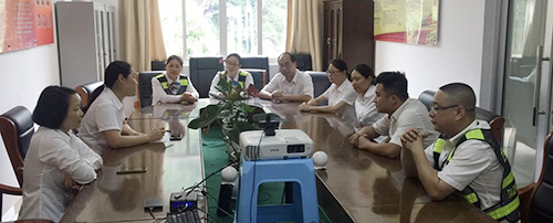 圖為公司副總經(jīng)理章海峰帶領(lǐng)相關(guān)人員趕往現(xiàn)場檢查分流備戰(zhàn)情況