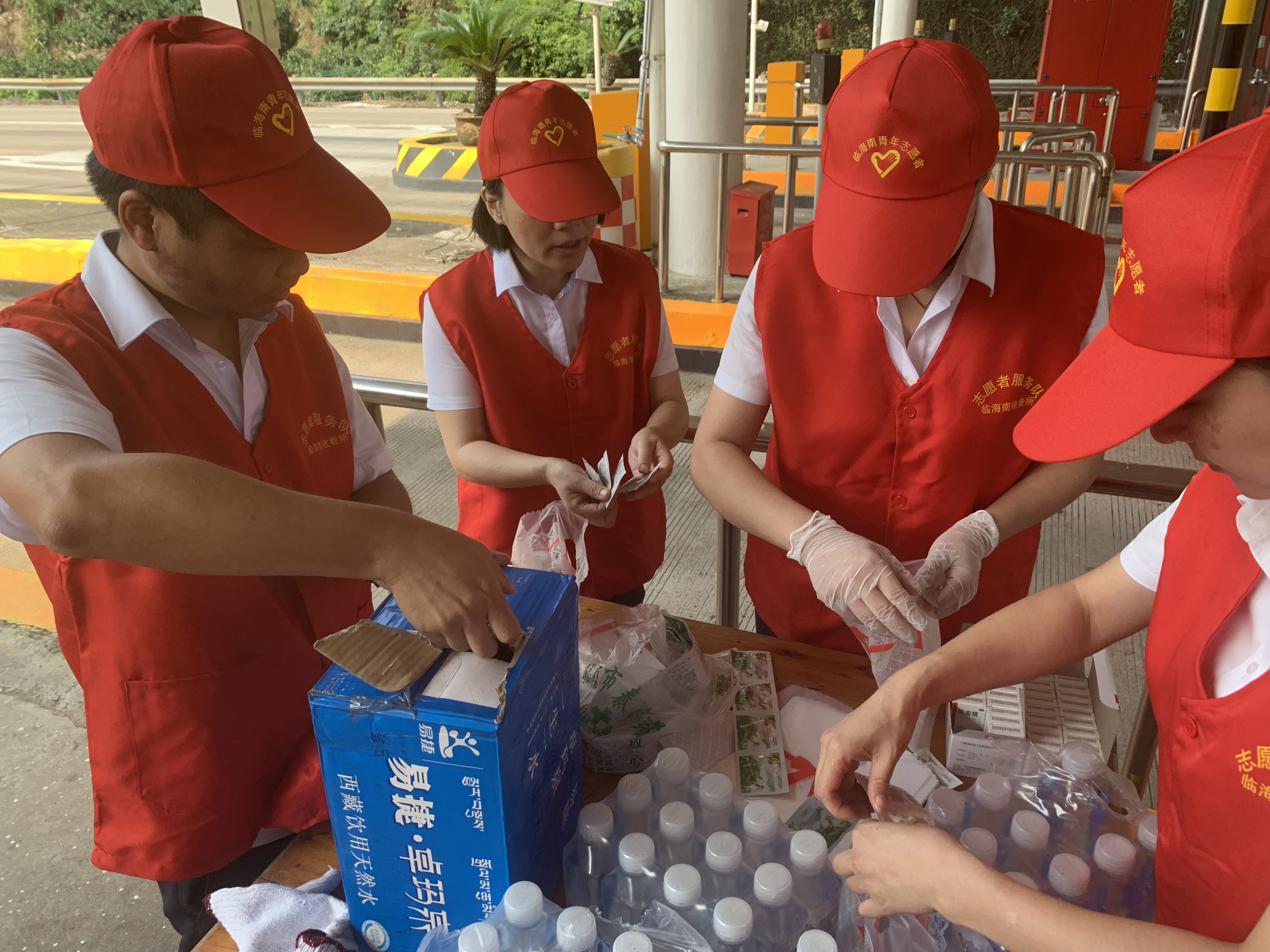 圖為志愿者在準(zhǔn)備防暑物品 “師傅,辛苦啦!這袋子里有礦泉水、風(fēng)油精、人丹一些防暑物品,您拿好,路上帶著以備不時(shí)之需!” “沒想到,你們收費(fèi)站還有這個(gè)服務(wù),這次我要出趟遠(yuǎn)門,說(shuō)不定路上還真能用的上,謝謝呀!”一位接過(guò)禮品袋的老師傅連聲道謝。