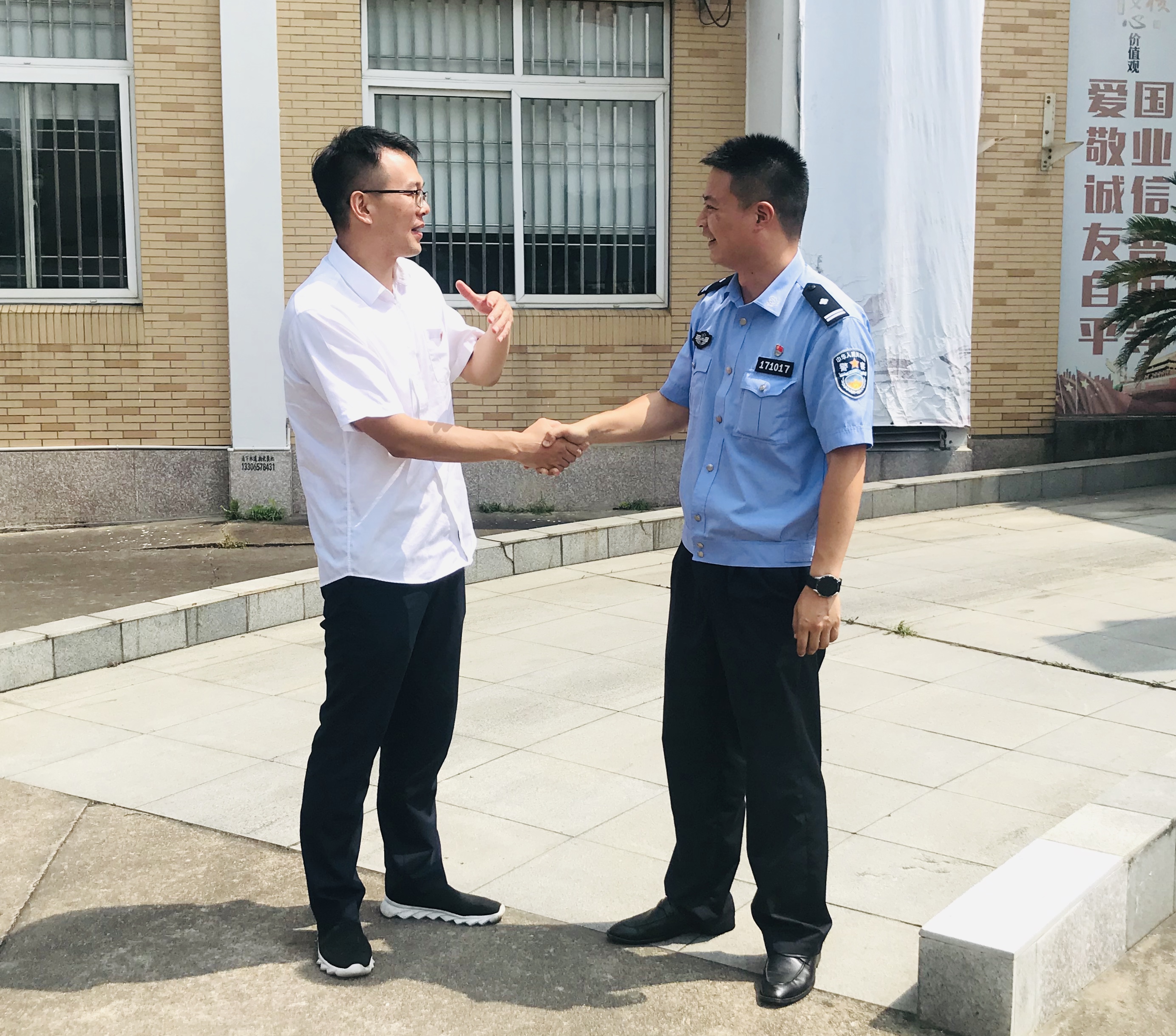 炎炎夏日送清涼 警民合作一家親 7月15日上午,臨海南收費所所長孫明偉帶隊到沿江派出所送清涼,向堅守一線的民警們送上誠摯的關(guān)懷,感謝他們對臨海南高速公路所做的貢獻。