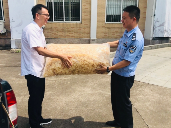 圖為送清涼問候現(xiàn)場 現(xiàn)場,孫明偉一行親切問候在炎炎夏日下辛苦執(zhí)勤的民警,給他們送去白木耳、綠豆、白糖、礦泉水等解暑慰問品,并對他們在維護收費站口道路安全暢通、司乘的安全出行中,所付出的辛勤勞動表示感謝,對他們飽含著愛心和奉獻、肩負著使命和責(zé)任、恪盡職守地為大家的出行保駕護航表示感激。同時表示,收費所也要將這種精神體現(xiàn)到收費服務(wù)工作中,加強收費站與站區(qū)所在地單位之間的溝通與協(xié)作,與地方派出所全力配合、協(xié)同作戰(zhàn),履職盡責(zé),共同確保高速公路安全暢通。 陳瑩