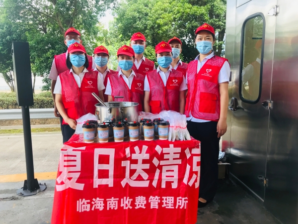 活動現場,志愿者們身穿耀眼的紅馬甲,面帶微笑,顯得格外耀眼動人。雖然大家的衣服早已被汗水浸透,但熱情周到的服務,獲得了過往司乘的紛紛點贊。臨海南收費所通過開展“夏日送清涼”活動,不僅送去了高速公路工作者的愛心,同時也拉近了與司乘人員之間的溝通交流,贏得了過往司乘人員的好評,塑造了良好的窗口形象。 除了為司乘送“清涼”,該所也真正做到把清涼送到收費一線,把關懷送到員工心坎,保障員工的健康權益,為員工提供了清涼油、克痢痧、午時茶、藿香正氣水等防暑降溫物品。食堂每天精心熬制不重樣甜湯,大家喝到提前冷涼的甜湯紛紛表示,三伏天里,雖然感到悶熱難受,但在休息的時候能喝上一碗涼涼的甜湯,真幸福。并保證一定會克服酷暑高溫,堅守崗位,盡職盡責,積極投身于收費、交通疏導工作中。