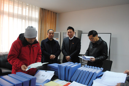 圖為評審專家正在查看相關臺帳