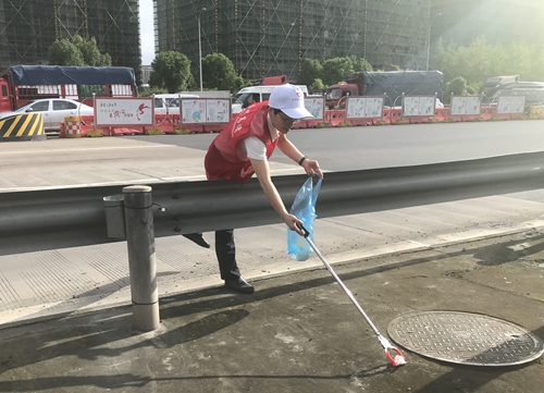 圖為工作人員向過往司乘發放垃圾不落地宣傳單