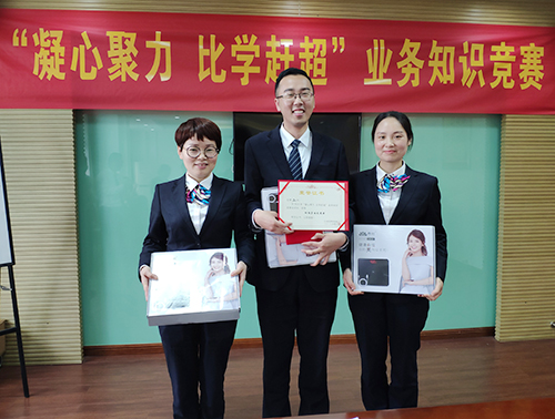圖為獲勝人員 此次筆試和現場問答的競賽方式,測試了全所人員業務知識、實踐操作和新業務新知識的掌握程度,激發了大家比學趕超的熱情,同時也讓員工找到自身業務水平不足的一面,有利于推動規范化文明服務更上新臺階。 楊雅芬