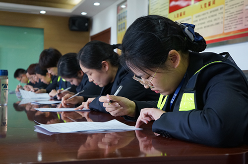 圖為筆試現場 比賽分筆試和現場問答兩部分,內容涉及收費政策、業務知識、特情處理、內控管理制度。筆試試題分成6份,參考人員隨機選題,各班組分批閉卷測試,最后取班組平均分進行排名。現場問答由必答題、搶答題、場外題等多個部分組成,采用累積計分、搶錯答錯扣分方式進行。各組以班組為單位每班派出3名選手,分成四組,其他班組人員則參加場外搶答。 “開具高速公路電子發票可下載“票根”APP或登錄票根網的網址是?” “車道移動支付掃碼設備連接異常,導致無法支付,需要做哪些?”