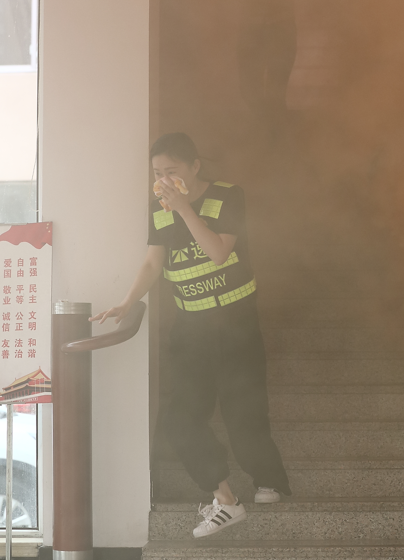 圖為火災(zāi)逃生演練現(xiàn)場 講座結(jié)束后,該所隨即開展火災(zāi)逃生演練。員工發(fā)現(xiàn)“火情”后立即撥打報警電話,參加演練人員聽到警報聲后,迅速拿起打濕的毛巾捂住口鼻,按照正確逃生動作要領(lǐng),從樓上彎腰低姿扶墻往樓下跑,大家有序疏散至安全地帶。 此次消防安全培訓,提高了全員的消防安全意識,提升了火災(zāi)等突發(fā)事故的應(yīng)急處理能力。 楊雅芬