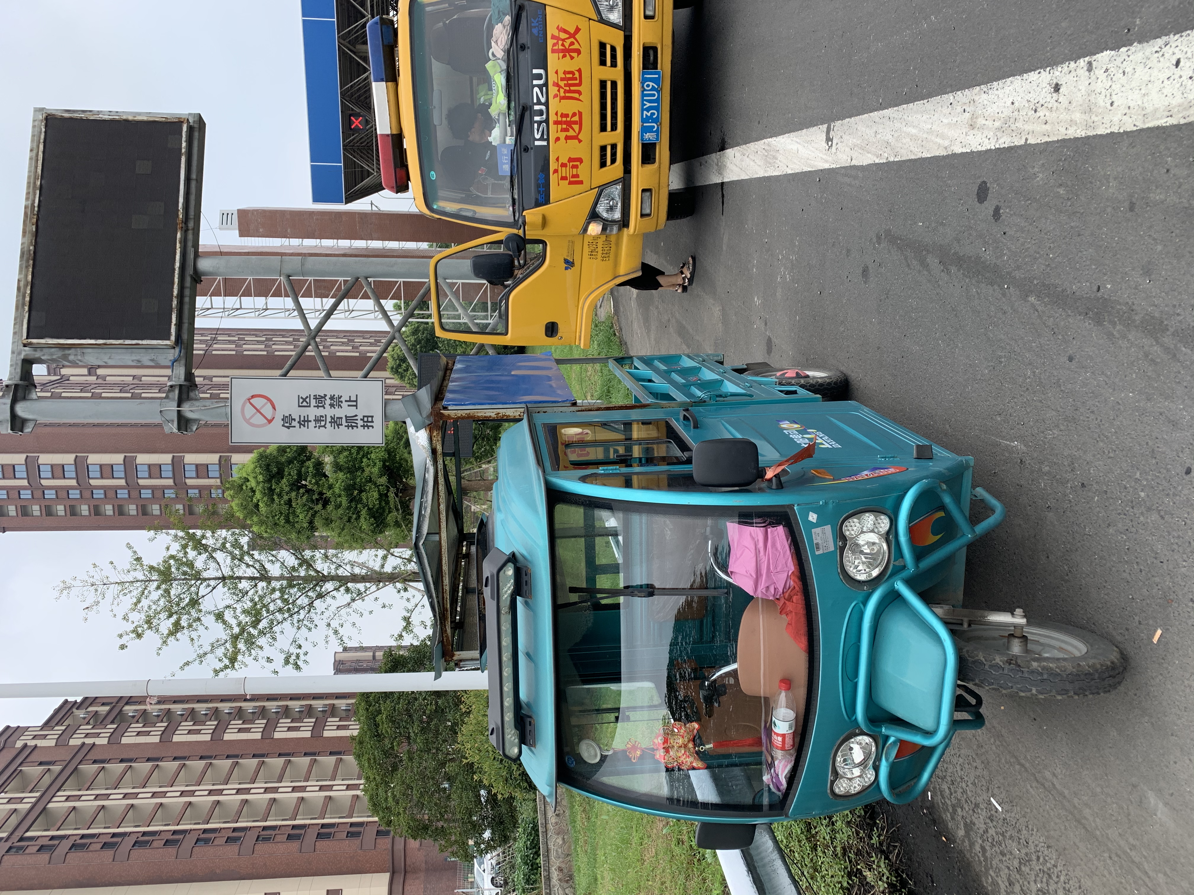 三輪車誤入高速 危險(xiǎn)!!! 7月26日上午,一輛電動(dòng)三輪車緊跟在大貨車后面開進(jìn)臺(tái)州收費(fèi)所入口車道,被發(fā)現(xiàn)后不顧收費(fèi)員勸阻,撞開欄桿,直奔寧向入口匝道。 10點(diǎn)18分,收費(fèi)員發(fā)現(xiàn)此電動(dòng)三輪車緊隨大貨車試圖進(jìn)入高速,立即勸阻,但三輪車主不聽勸,收費(fèi)員準(zhǔn)備出崗?fù)穹禃r(shí),她直接撞開欄桿向前行駛,收費(fèi)員立即用對(duì)講機(jī)匯報(bào)了情況。此時(shí)正在出口處理特情的班長(zhǎng)聽到后,快速往匝道口追去,邊追邊喊,并通知監(jiān)控中心,然而三輪車加速前行。10點(diǎn)30分左右,交警在主線找到這輛三輪車并攔截住,10點(diǎn)50左右在高速救援車(輪胎車)的護(hù)送下,安全出高速。