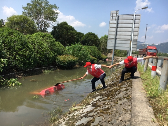 圖為志愿服務(wù)現(xiàn)場(chǎng) 隔離護(hù)欄被風(fēng)吹歪的,將其扶正,并作簡(jiǎn)單的固定;綠化帶好多樹(shù)被連根拔起,找來(lái)?yè)螚U、繩子進(jìn)行加固;斷枝殘葉滿地都是,就用手撿,用掃把掃,集中堆放倒伏的斷枝;清掃路上的垃圾;清除路障;打撈被風(fēng)吹入邊溝的水馬;對(duì)收費(fèi)區(qū)域的衛(wèi)生來(lái)了一次大清理…… 臺(tái)風(fēng)后氣溫升高,空氣濕度大,天氣異常悶熱,志愿者們揮汗如雨,一個(gè)個(gè)臉被曬得通紅,他們卻沒(méi)有因此放下手中的工具,停滯清理的步伐,迎“熱”而上,為災(zāi)后的恢復(fù)貢獻(xiàn)自己的力量,用行動(dòng)踐行初心和使命。 夏蓮萍