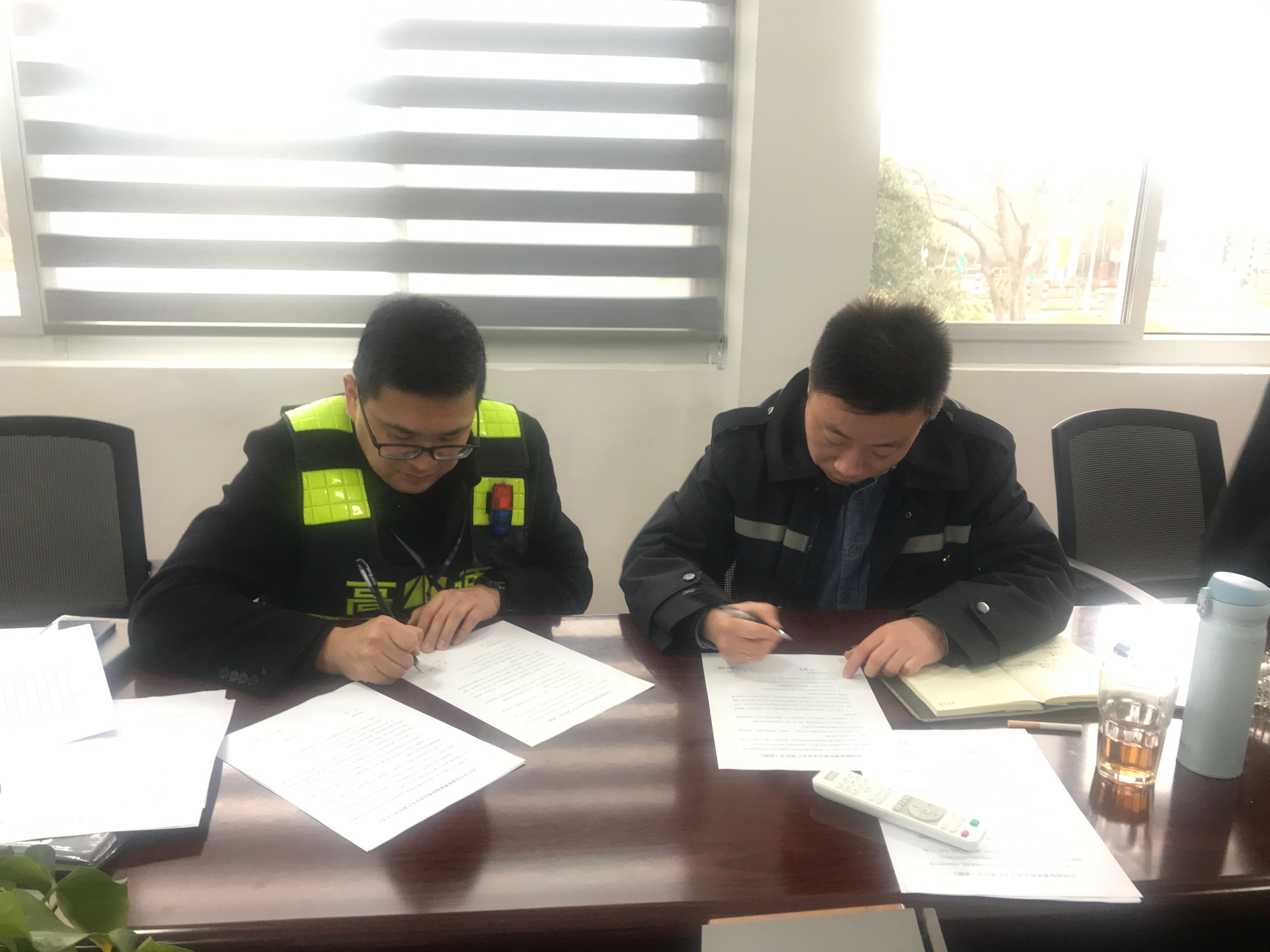 (圖為所長與班長簽訂春運安全生產(chǎn)責(zé)任書 )