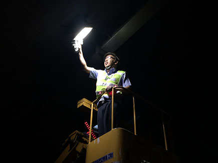 圖為工作人員更換滅火器 因隧道內車輛往來密集,氣體和灰塵難以散發,容易沉積在隧道壁、監控攝像頭及照明燈上形成污漬,此日積月累削弱了隧道內的照明效果,影響駕駛員視線,存在安全隱患。對此,黃土嶺隧道所組織人員對隧道進行清洗和維修保養設備,全面排查各類安全隱患。執勤隊利用登高車逐一清潔寧向左洞內監控攝像頭及照明燈,檢查消防設施狀況,統一對滅火器進行掛牌完善記錄,并協同維養中心檢修溫向隧道照明系統線路,修復損壞的燈具。 經過清洗保養后的黃土嶺隧道,燈光通明,監控清晰,有效地保障了隧道的安全暢通。 毛譯聆
