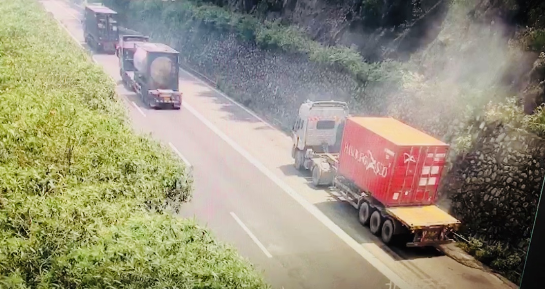 快速出警 將“火”扼殺在萌芽狀態(tài) 7月17日,連日的陰雨總算放晴,中控員如常盯著監(jiān)控大屏,13:18分,黃土嶺隧道溫向北洞口停車帶一輛紅色半掛車極其耀眼,憑借多年的崗位經(jīng)驗,中控員第一時間切換到主畫面,嚴(yán)密監(jiān)視車輛動態(tài)。 “不好,車輛‘著火’了!”短短幾秒鐘的時間,此車右側(cè)后方逐漸升起煙霧,越來越濃密。中控員立即通知監(jiān)控中心與執(zhí)勤隊,啟動應(yīng)急預(yù)案。