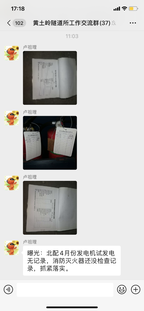 圖為檢查配電柜現場 目前,全國高速公路仍處于免費通行階段,黃土嶺隧道日流量高達6.3萬輛,日趨常態化的大流量成為隧道所安全管理的最大挑戰。為保障隧道行車安全,道路暢通,該所持續加強管理,在“五一”節前,重點對配電室、發電房進行了線路排查,對發電機進行日常維護與保養,保證在遇突發停電情況時,設備能夠不斷電運行。還對滅火器、消防泵等應急設備進行檢查,確保有效應對突發事件。以及查看了隧道內的照明系統、警示標志等設施和排查房建方面有無脫落風化發生,確保雨季前的安全生產。