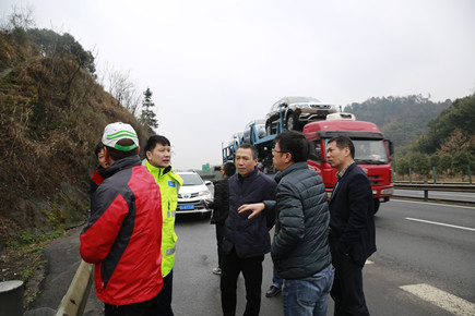 公司總經理張建平督查沿線道路養護整改工作 2月23日下午,公司總經理張建平在總工程師江輝的陪同下,同高速路政相關人員深入一線督查公司所轄高速路段道路養護整改落實工作。公司工程部、養護公司以及監理單位相關人員陪同督查。