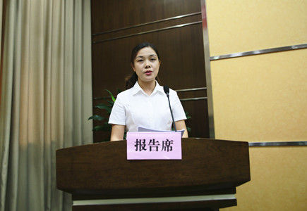圖為公司財(cái)務(wù)總監(jiān)章彩霞宣讀議案