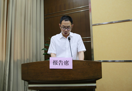 圖為公司工會(huì)主席項(xiàng)義超宣讀議案