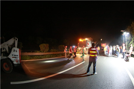 反復(fù)溝通,施工保質(zhì)保進(jìn)度。要在車流量極大的主干線上夜間順利施工,不僅對(duì)工程質(zhì)量、進(jìn)度負(fù)責(zé),更要對(duì)安全保暢負(fù)責(zé),不能有半點(diǎn)疏忽,不允許絲毫麻痹,而且涉及面極廣。不僅涉及工程部與施工監(jiān)理單位,更涉及到高速交警、路政及運(yùn)營(yíng)管理等多個(gè)部門,前期工程部協(xié)交警、營(yíng)運(yùn)部、監(jiān)理、施工等各相關(guān)單位就施工方案反復(fù)論證,一次次的討論與交流,計(jì)劃改了又改,從提前發(fā)布公告到路口設(shè)立標(biāo)志,從預(yù)警車輛安排到分流時(shí)間節(jié)點(diǎn),從搶險(xiǎn)預(yù)案到應(yīng)急小分隊(duì)建立,路面的反復(fù)測(cè)量,綠化養(yǎng)護(hù)的同期推進(jìn).....千頭萬緒,在于每一個(gè)細(xì)節(jié)的反復(fù)論證。一直到11號(hào)下午,確定了最合理有效的交通組織方案,施工前的安全和技術(shù)方面有了最后的交底,器械設(shè)備、材料、人員班組配備等一一清點(diǎn)得到最終確認(rèn)。