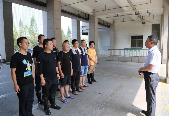 集團董事長、總經理陳文波勉勵隊員們“不忘初心、牢記使命”,發揮黨組織戰斗堡壘作用和黨員干部先鋒模范作用,積極開展志愿活動,為臨海市災后恢復和重建貢獻力量。