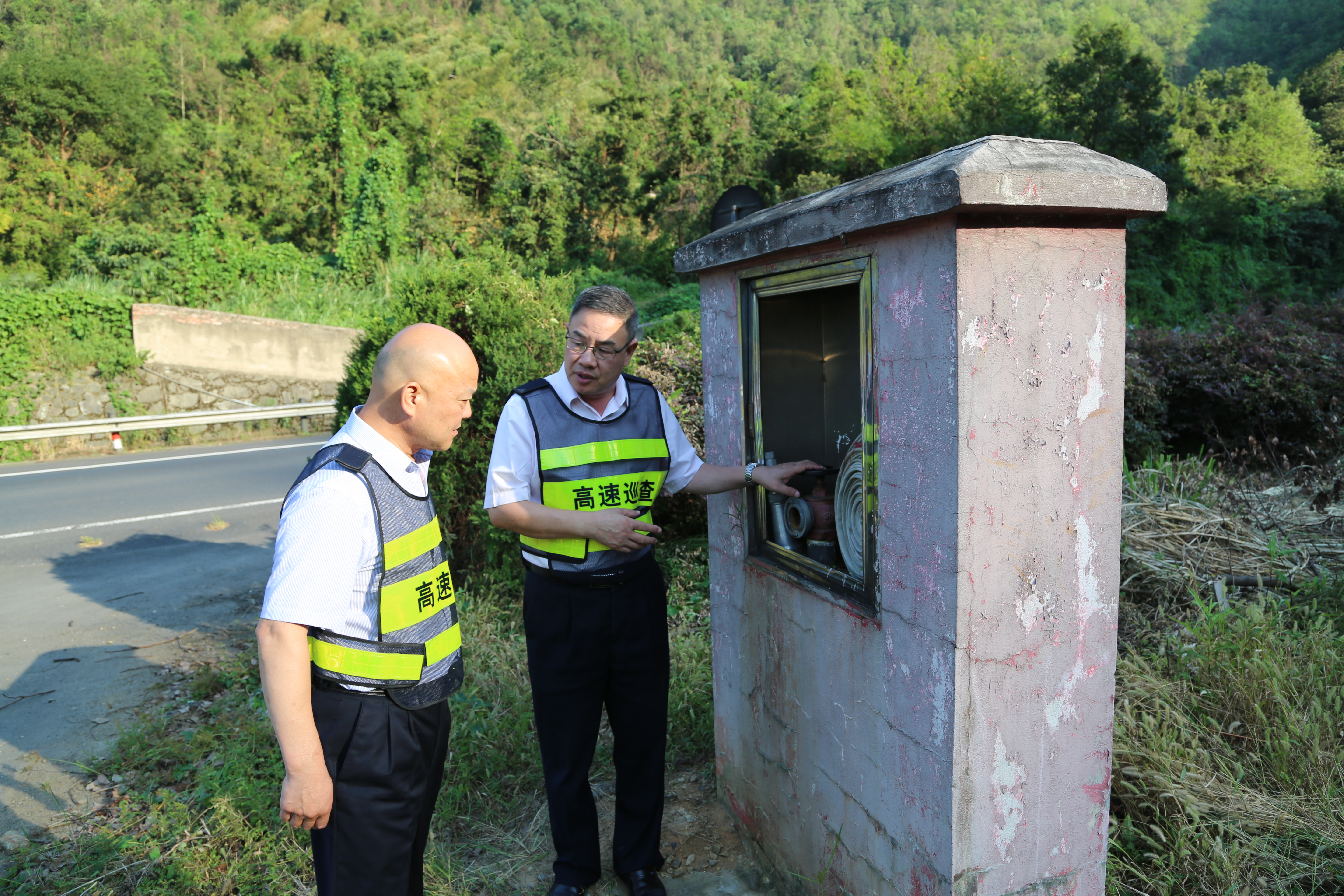 圖為陳文波一行查看消防設施 隨后檢查組一行針對公司路段沿線隔離帶樹木、塘嶺隧道、收費站內廣場防撞護欄等區(qū)域存在安全隱患的問題,檢查組進行了現(xiàn)場會商,給出了解決方案。 陳文波強調,中華人民共和國成立70周年大慶期間,做好安全保暢工作是嚴肅的政治任務,意義重大。陳文波要求全體員工要充分認識到國慶期間安全生產(chǎn)的重要性,要以高度的政治責任感、良好的作風抓好道路保安保暢工作,以“平安高速”嶄新的面貌,展現(xiàn)高速集團高質量發(fā)展的新風貌,向國慶70周年獻禮。 張波