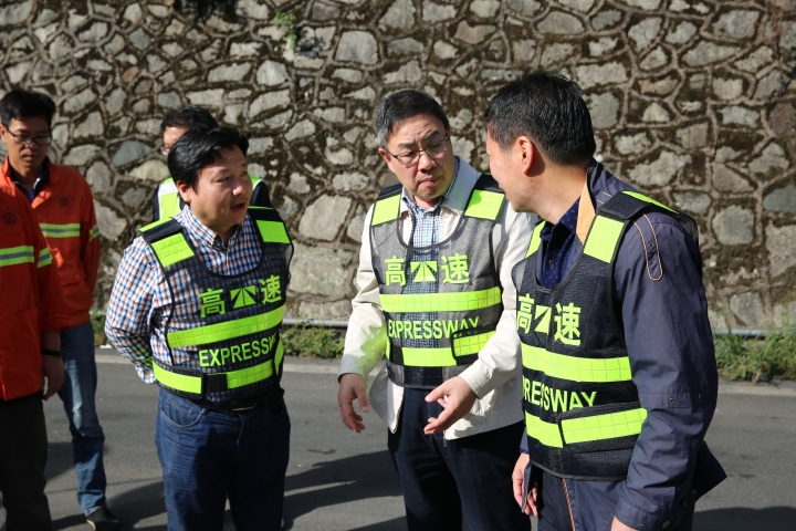 10月31日上午,臺州高速集團(tuán)董事長陳文波在總工程師江輝的陪同下,趕赴甬臺溫高速公路溫州方向黃土嶺隧道、橋梁維修加固工程施工現(xiàn)場,檢查施工進(jìn)展情況。