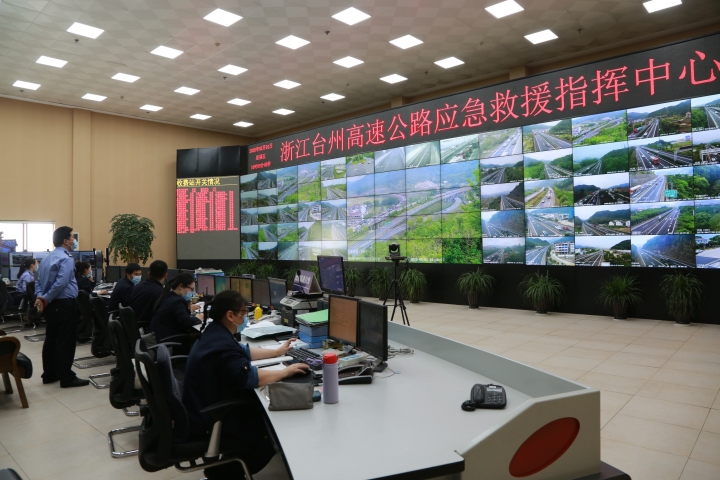 圖為金寶敏一行檢查臺州高速公路應急救援指揮中心