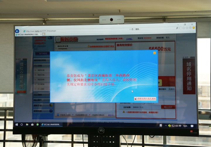 喜報(bào)!臺(tái)州高速再次成功斬獲黃巖新地! 6月18日上午9點(diǎn)20分,臺(tái)州高速集團(tuán)再次斬獲黃巖新地!以5.65億元成功競(jìng)拍黃巖區(qū)西城街道二環(huán)西路西側(cè)、儀鳳街北側(cè)地塊。臺(tái)州高速集團(tuán)黨委書記、董事長(zhǎng)、總經(jīng)理陳文波坐鎮(zhèn)指揮,副總經(jīng)理羅小將陪同參加競(jìng)拍。