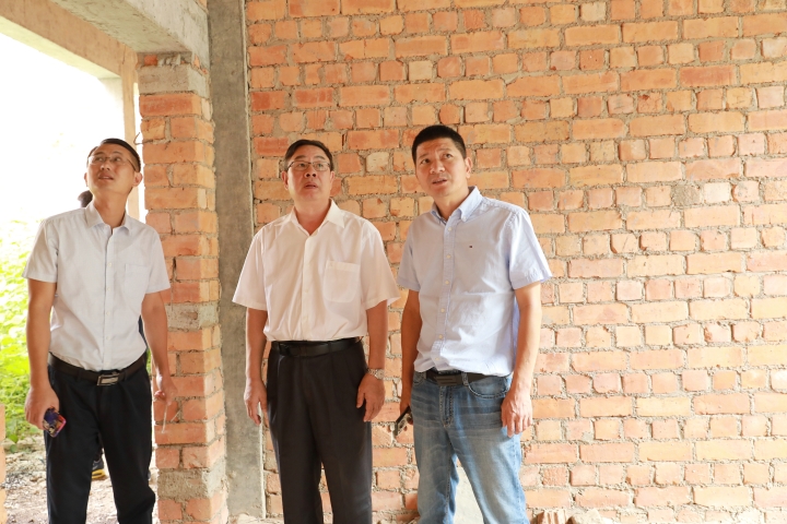 圖為陳文波一行在淡竹景區查看茅草山莊外立面建設情況 淡竹景區有著豐富的原始森林資源,距離國家五A級景區神仙居僅二十多分鐘車程,區內山清水秀,空氣清新,生態環境優美。座談后,陳文波一行驅車前往景區現場,實地察看項目情況,深入了解項目的區位、交通、資源等具體情況。 陳林偉