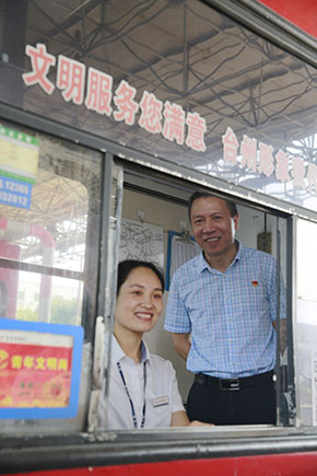 “今天車流量多嗎?你們是公司形象的代表,請把最優(yōu)質(zhì)的服務(wù)提供給他們?!痹谂_州收費(fèi)所一號崗?fù)だ?,張建平一邊慰問?dāng)班收費(fèi)員,囑咐他們注意安全和休息,一邊鼓勵他們堅持做好文明服務(wù)。他還到黃土嶺隧道所、臨海南收費(fèi)所慰問當(dāng)班執(zhí)勤隊員和收費(fèi)員。此時,各所食堂管理房正處于改造階段,他仔細(xì)查看了各所食堂和工作場所,了解大家的飲食和工作環(huán)境。