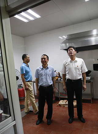 圖為公司副董事長、總經(jīng)理張建平檢查收費(fèi)所食堂