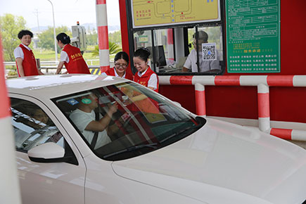 圖為公司副董事長、總經(jīng)理張建平慰問崗?fù)ぎ?dāng)班收費(fèi)員