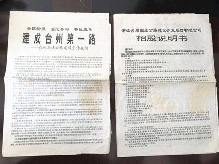 辦理業(yè)務的過程中,有個股東說:“臺州高速真是貼心,知道我們跑城里不方便,還上門辦理業(yè)務,就沖這個也要來把股票賣掉?!边€有個股東說:“臺州高速真好,我只投了200塊錢,除了給我一千多的分紅,現(xiàn)在216股還能賣1500多,非常合算,早知道買一萬股了。” 臨近中午的時候,來了一位面目普通的中年人,他準備了他父親和母親的身份證還有銀行卡,工作人員以為是兩筆代辦業(yè)務,原來是查詢股東紀錄的,查詢的股東名字叫婁巖奶,因為巖奶兩字比較少見,我記得上午的時候辦理過一個叫巖奶的股東的收購業(yè)務,就非常好奇的詢問,這時候管理處的工作人員解釋,他們這里有兩個叫巖奶的人,一個是婁巖奶,一個是宋巖奶,經(jīng)過查詢卻沒有找到婁巖奶的股東信息。據(jù)管理處工作人員回憶,1993年婁巖奶當時還未退休,應該購買了股票。經(jīng)過查詢管理處的退休人員清冊,發(fā)現(xiàn)婁巖奶于1994年12月才退休,根據(jù)初步判斷估計該股東可能當時出于各種原因并沒有購買股票。為了慎重起見,于是工作人員請求管理處把股票購買的原始檔案調(diào)閱出來查看,翻開斑駁的原始記錄,一個一個仔細查詢股東姓名,但是很遺憾并沒有該股東的信息,工作人員肯定地回復了股東。雖然讓婁巖奶的兒子失望了,但是工作人員卻在斑駁的檔案中看到了非常珍貴的歷史檔案:《全區(qū)動員、全民參與、苦戰(zhàn)三年、建成臺州第一路—臺州高速公路建設宣傳提綱》、《浙江臺州高速公路建設開發(fā)股份有限公司招股說明書》,看著這些檔案,眼睛有些濕潤,仿佛又回到了那個波瀾壯闊的年代,也為高速集團曾經(jīng)的創(chuàng)舉而驕傲。