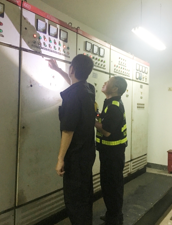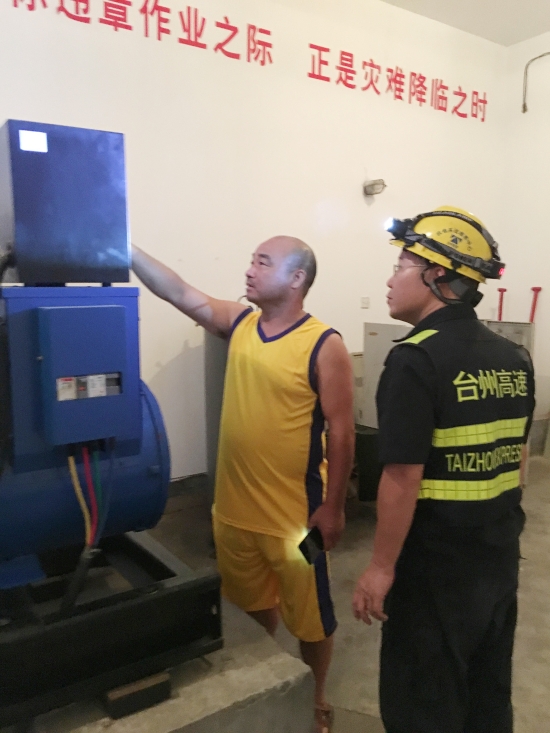 圖為搶修人員查看發(fā)電機運行態(tài)況 然而僅僅過了5個小時,28日凌晨2點20分,臨海南收費所的一通搶修電話將隊員們驚醒,臨海南收費所又斷電了! 凌晨的臨海南收費所籠罩在黑暗中,微風輕輕地吹著,除了蟋蟀的鳴叫,唯有搶修人員的手電偶爾劃破夜空。搶修隊員們很快就發(fā)現(xiàn)了故障原因,這次是市電B相沒電,因為是凌晨,考慮到電力部門外線人員不會來修復(fù),搶修人員決定暫時采用備用發(fā)電機發(fā)電的方式,待天亮后再聯(lián)系供電部門。為了防止臨海南收費所再次陷入斷電困境,維養(yǎng)中心搶修一班班長何小敏從30公里外的張家渡連夜驅(qū)車趕到了所里,主動請纓留下來值守,待電力部門恢復(fù)正常市電后再回去。