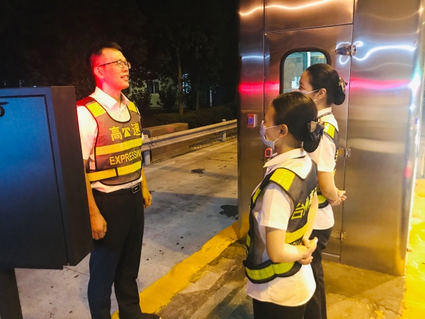 “鈴鈴鈴……”7月20日凌晨2點40分,臨海南收費所傳來急促刺耳的電話鈴聲。 “主線有事故,出口分流,ETC72車道改人工?!?/span> 近階段,臨海南收費所在事先沒有通知和任何準備的情況下,分批次對四個征費班組開展夜間突擊緊急集合演練,考察保暢隊伍在遇緊急事件時到達崗亭的速度,以及應急處置能力。 一聽到緊急通知,所有在崗人員像對待真事故一樣,第一時間到達崗亭待命。