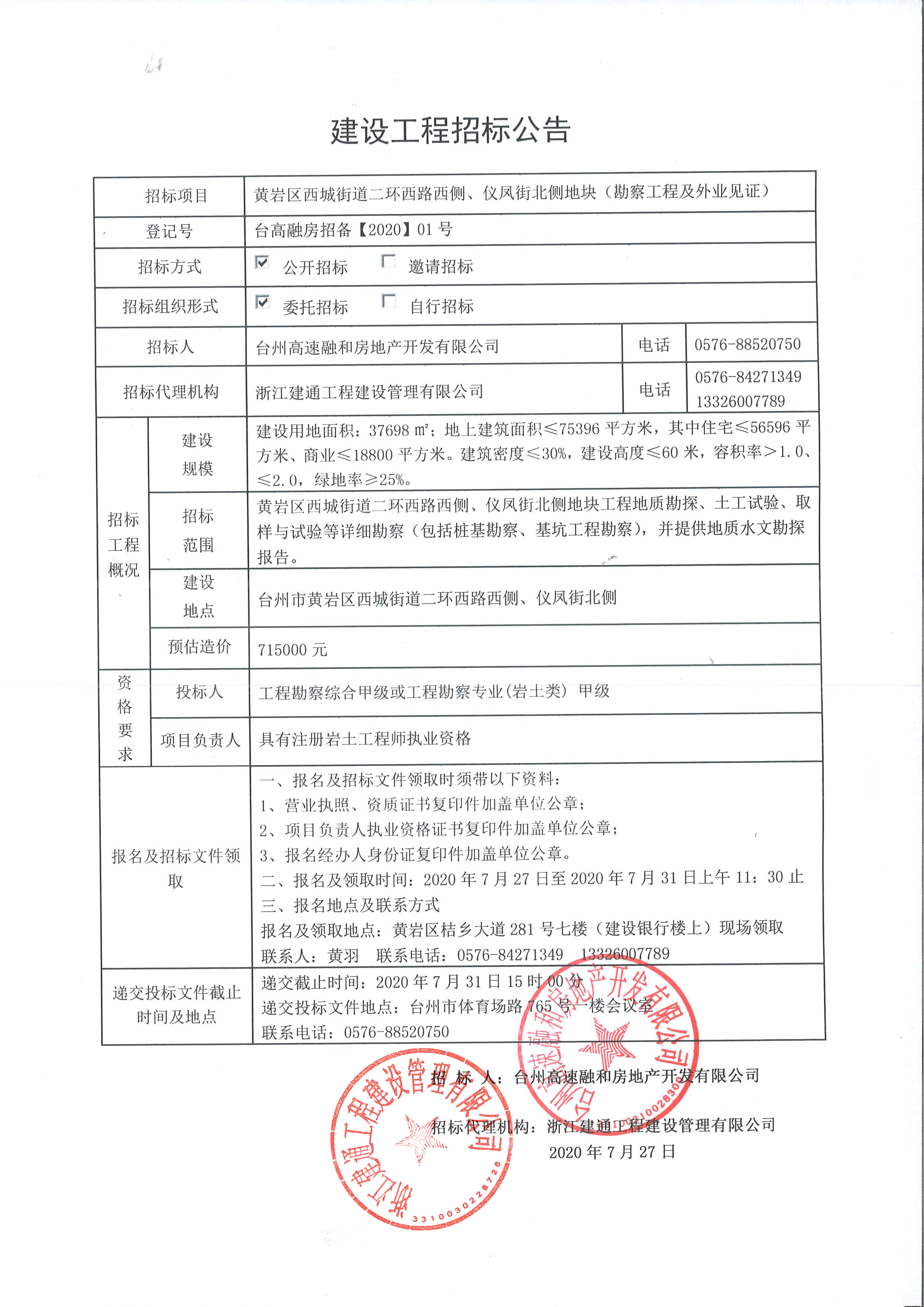 黃巖區(qū)西城街道二環(huán)西路西側(cè)、儀鳳街北側(cè)地塊(勘察工程及外業(yè)見證)建設(shè)工程招標(biāo)公告