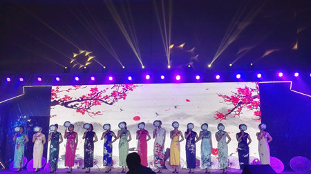 圖為旗袍秀現(xiàn)場 晚會一開場,由椒江區(qū)前所街道前所村(全國文明村)表演的鑼鼓舞《歡慶新時代》馬上將觀眾帶入到熱烈的氣氛中。隨后,各家單位選送的15個節(jié)目以小品、舞蹈等多種形式,展示學(xué)習(xí)貫徹落實十九大的成績,歌頌新時代黨領(lǐng)導(dǎo)下的新氣象。 公司員工包德福代表公司參加晚會,獨唱歌曲《天際》,其動聽的歌聲贏得了現(xiàn)場觀眾的陣陣掌聲和喝彩。 周茂森